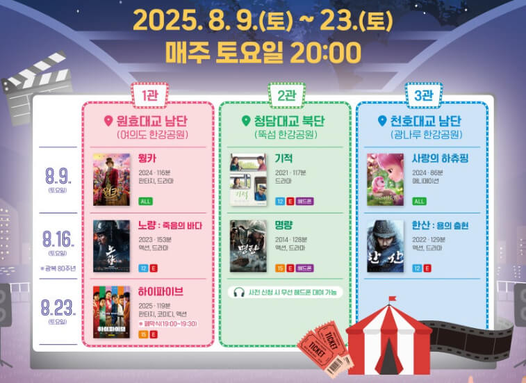 여름의 무더위를 시원하게 식혀줄 서울의 대표적인 야외 영화제, 2025 한강다리밑 영화제가 올해도 어김없이 찾아왔습니다.
