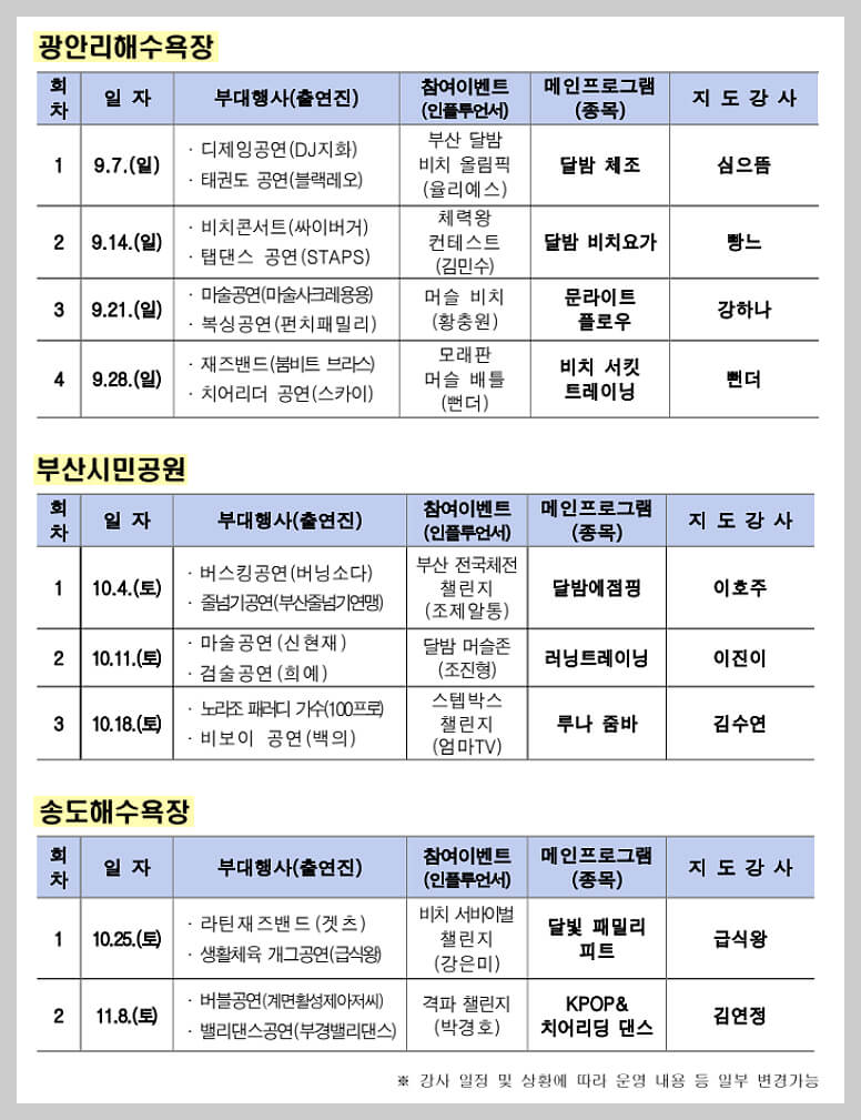 - 광안리해수욕장 : 9/7, 9/14, 9/21, 9/28
