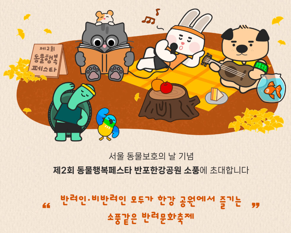 이번 축제는 국가지정 기념일인 10월 4일 '동물보호의 날'을 기념하여 진행되는데요~ 반려인뿐 아니라 비반려인도 함께 즐길 수 있는 다양한 프로그램으로 구성됩니다.
