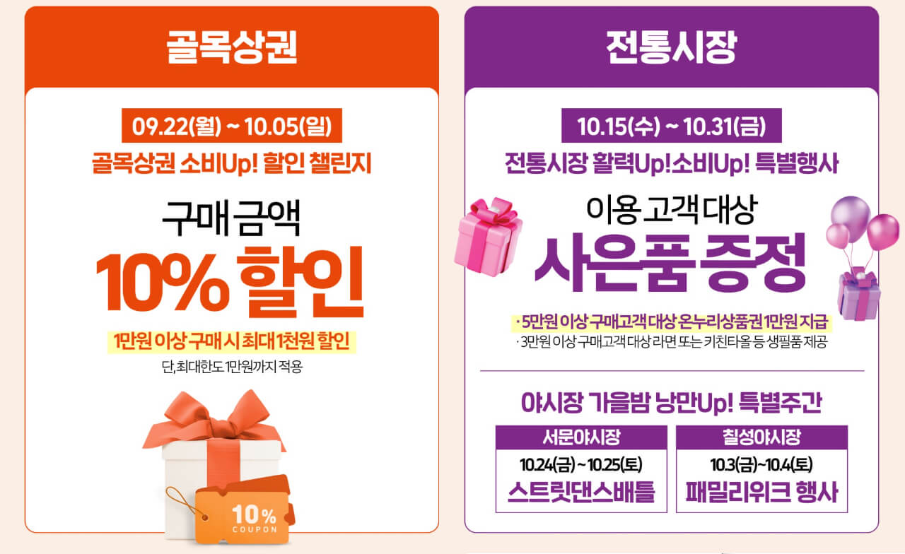 | 골목상권 | 10% 할인 | 1만원 이상 구매, 최대 1천원 |