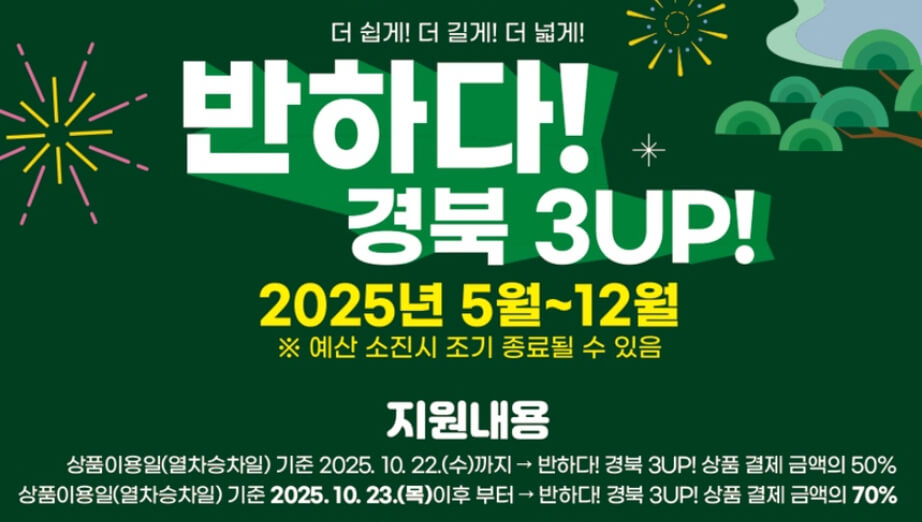 반하다 경북 3UP은 경북문화관광공사와 코레일이 함께 진행하는 지역 활성화 여행 지원사업입니다.