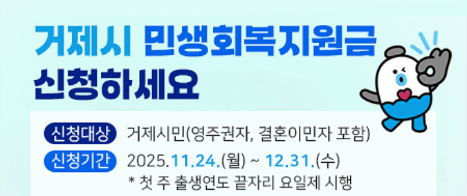 - 지원대상 : 2025년 9월 30일 기준 거제시 주민등록자
