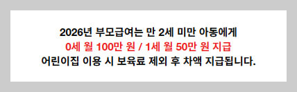 | 만 0세 (0~11개월) | 월 100만 원 | 보육료 제외 차액 현금 지급 |