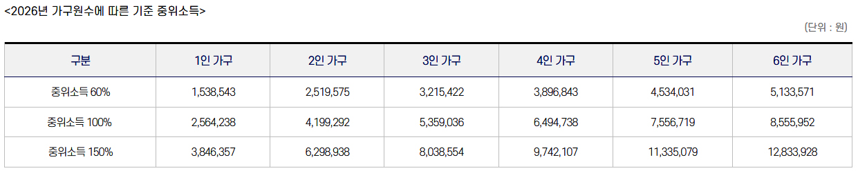 - 기준 중위소득 60% 초과 ~ 150% 이하 가구