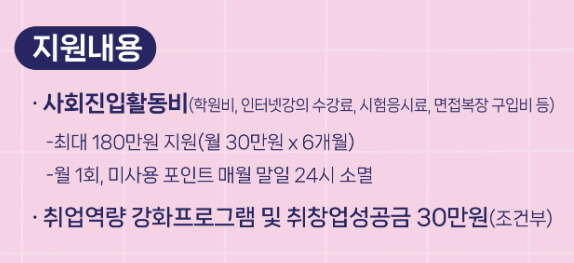 또한 참여 기간 동안 취업 또는 창업에 성공할 경우 추가로 30만 원의 성공금도 지급되어, 최대 210만 원 수준의 혜택을 받을 수 있습니다.