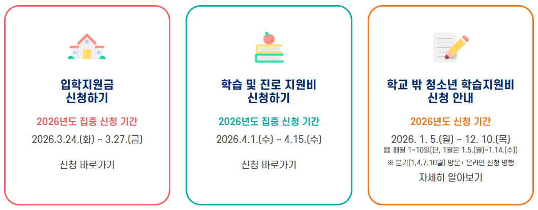 | 학습·진로 지원비 | 2026년 4월 1일 ~ 11월 30일 | 학생 또는 보호자 |